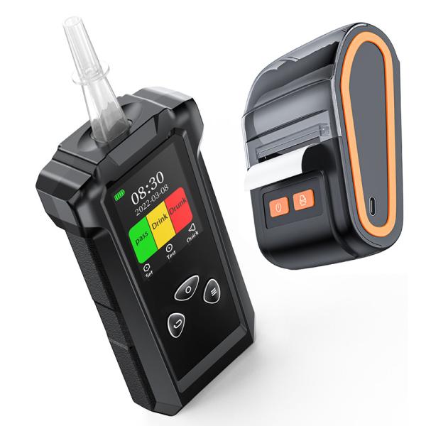 The Alcohol Breath Analyser With Printer is a portable device specially designed for measuring alcohol content with a detection range of 0.00-600mg/100ML (Gas). It has an LED display and a size of 12cm * 5.7cm * 2.7cm, making it easy to carry and use. It is equipped with a 1500mAh large capacity lithium battery, which provides more than 24 hours of standby time. It also has a printing function that allows users to print out the measurement results. The instrument can be calibrated directly by the administrator, and it can store up to 200000 test records.